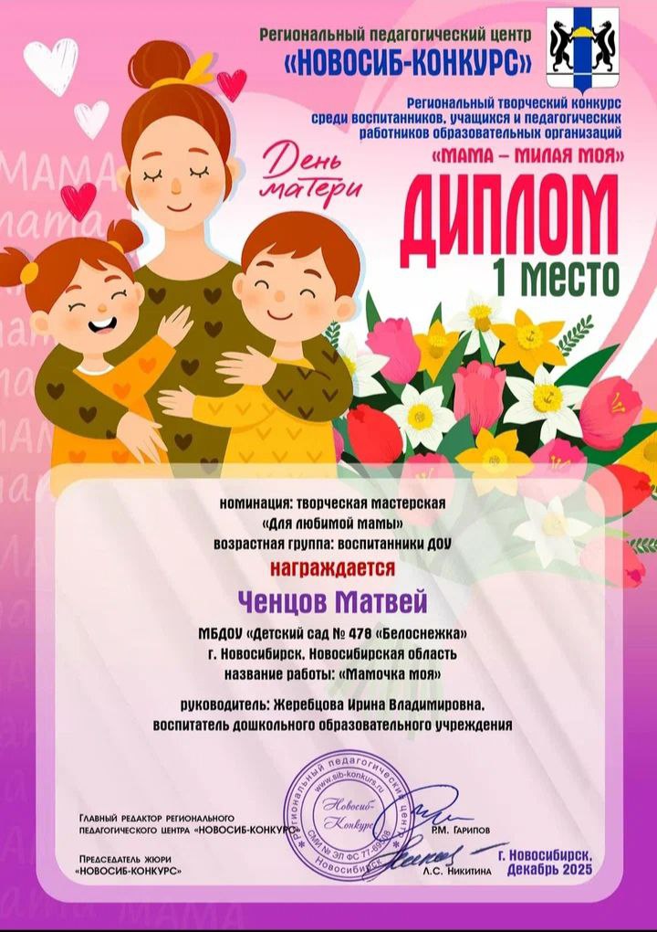 Ченцов Матвей: "Новосиб-конкурс". Номинация: творческая мастерская "Для любимой мамы". Название работы: "Мамочка моя".
